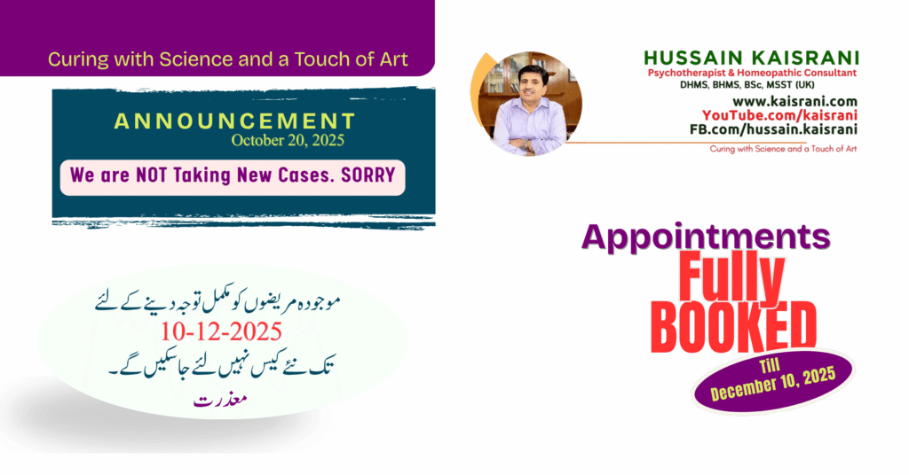 حسین قیصرانی ۔ سائیکوتھراپسٹ & ہومیوپیتھک کنسلٹنٹ ۔ لاہور ۔