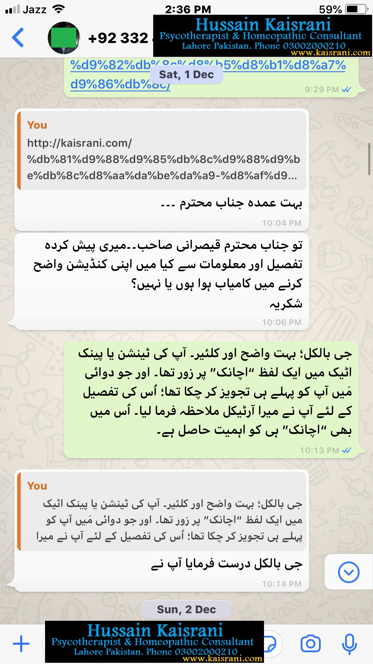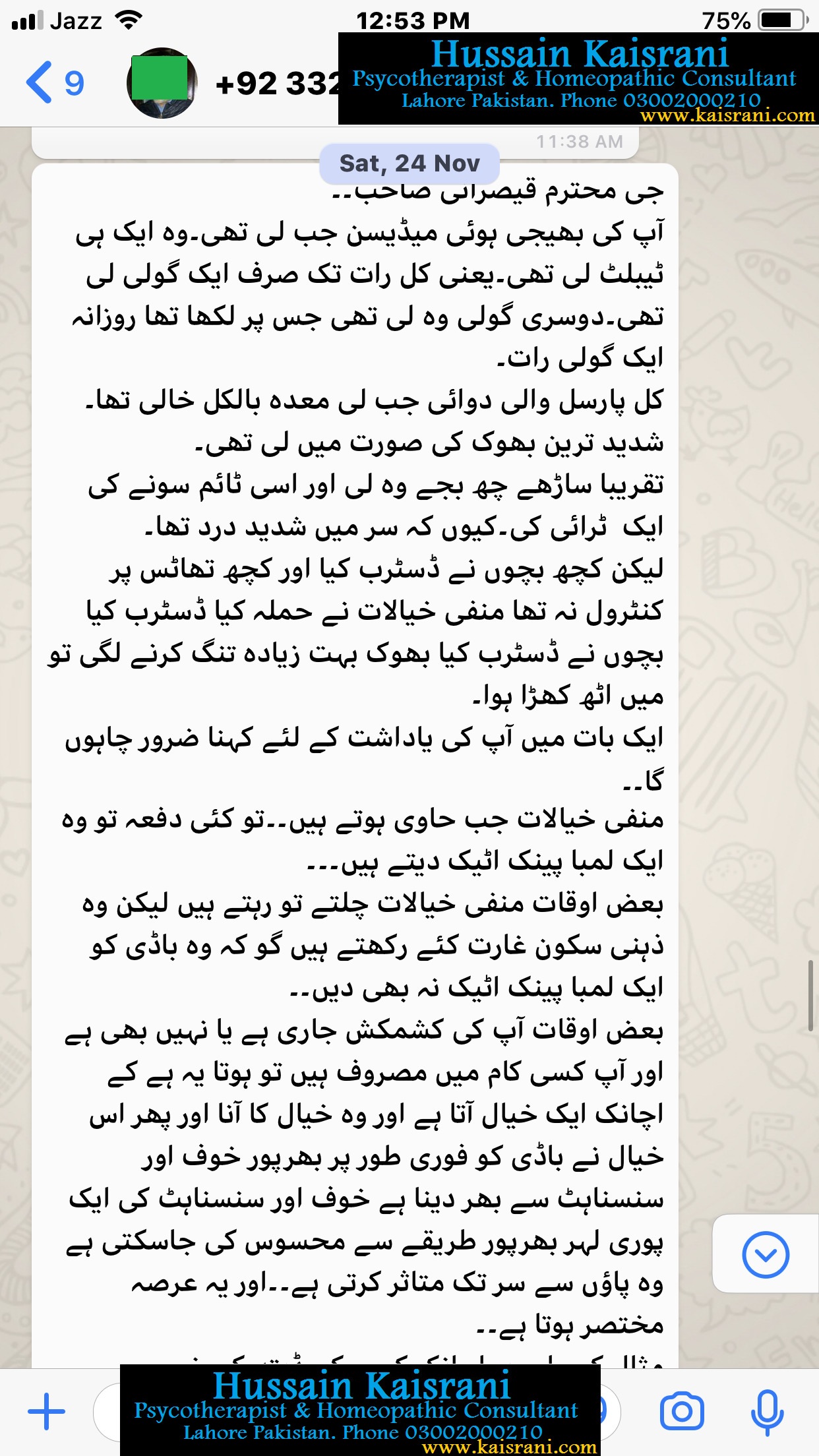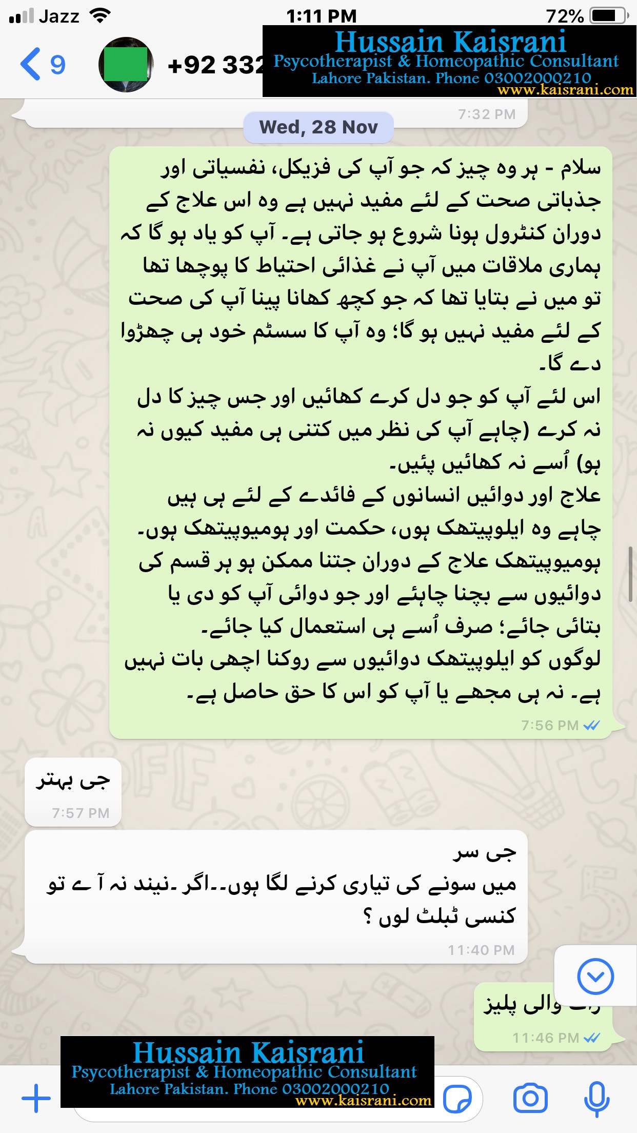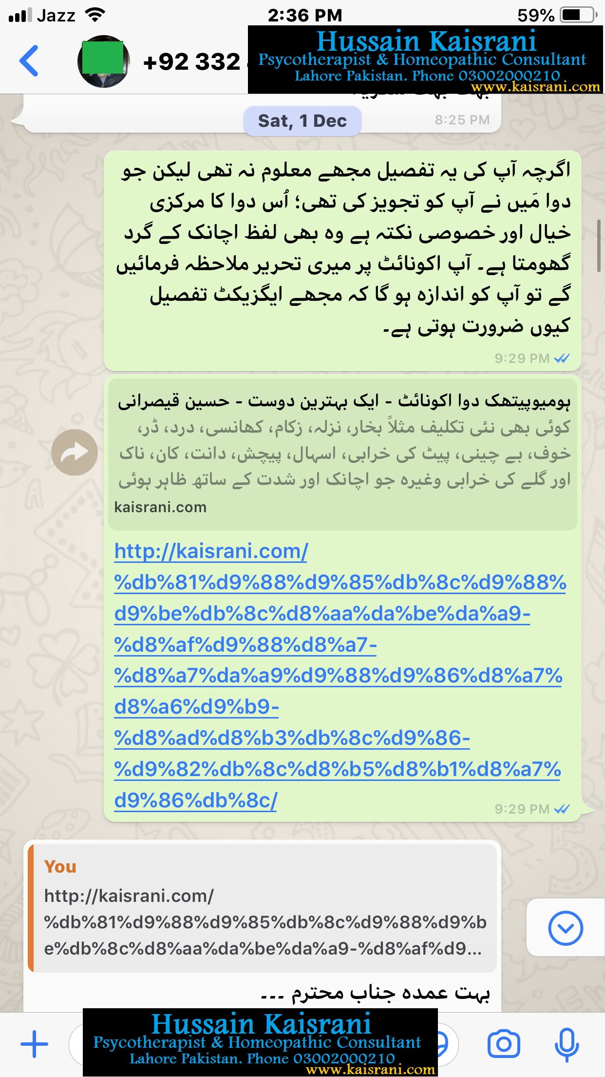 حسین قیصرانی ۔ سائیکوتھراپسٹ & ہومیوپیتھک کنسلٹنٹ ۔ لاہور پاکستان فون نمبر 03002000210۔