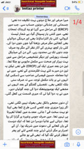 تین دن بعد میری ایک اَور (ERCP) طے تھی لیکن یہ تین دن میرے لئے بہت فکرمندی کے تھے۔ میں نے اپنا معاملہ حسین قیصرانی صاحب سے ڈسکس کیا۔ انہوں نے ہر بات مکمل توجہ سے نہ صرف سنی بلکہ لکھی بھی۔ تفصیلی گفتگو کے بعد انہوں نے مجھے ایک ہومیوپیتھک دوا کی چند گولیاں دیں۔ میں نے یہ دوا کیا لی کہ میری قسمت ہی کھل گئی۔