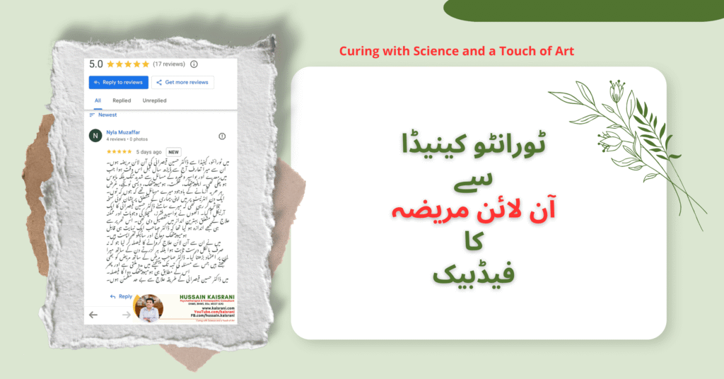 میں ٹورانٹو، کینیڈا سے ڈاکٹر حسین قیصرانی کی آن لائن مریضہ ہوں۔ ان سے میرا تعارف آج سے ڈیڑھ سال