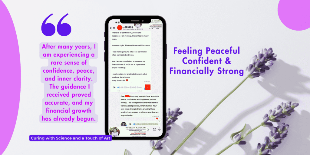 Dr. Hussain Kaisrani guided me with great clarity and confidence and his words proved to be absolutely right. He told me that my financial condition would improve, and I am already seeing clear progress.